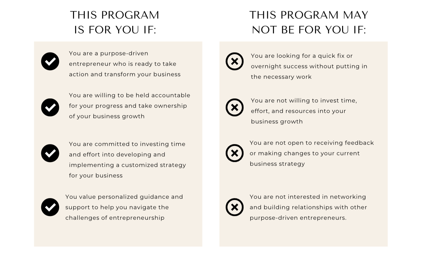 Before we can get started, please review the program details on this page to ensure that our coaching program is a good fit for you.